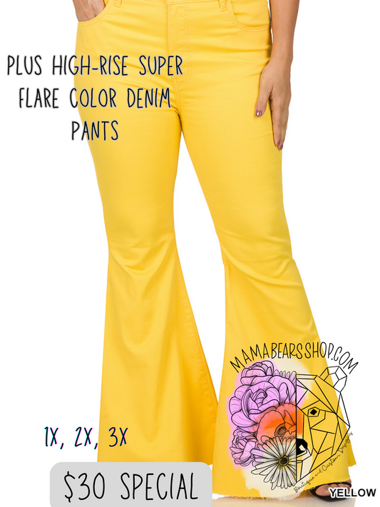 PLUS High-rise super flare color denim pants