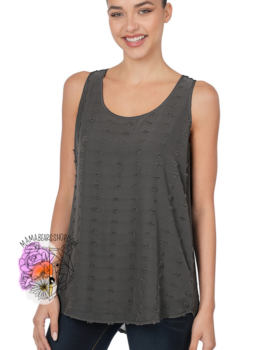 Swiss dot sleeveless round neck & round hem top