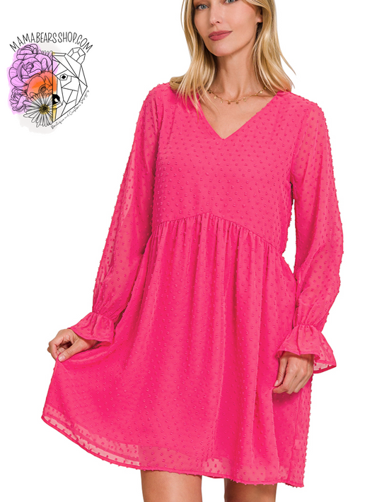 😯Swiss dot long sleeve v-neck dress