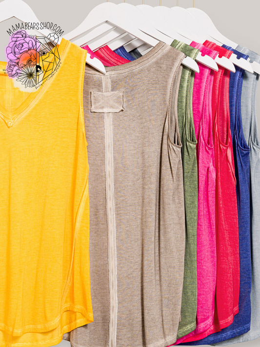 Washed Sleeveless V-Neck Top W/ Hi-Low Hem