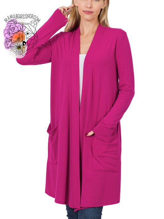 Slouchy pocket open cardigan *Magenta